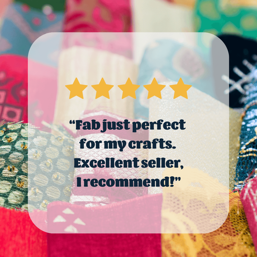 - Expect eye-catching fabric pieces from around 3 to 7" in width/length