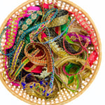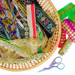 Whether it’s junk journals, boho beads or something totally original, these beautiful Indian sari ribbons and skinny bohemian trims are the perfect textile embellishments. A bohemian banquet of vibrant hues, golden thread work, twinkling accents and eye-catching sparkles - whatever projects you have in mind this pack of trims is full to the brim with potential.