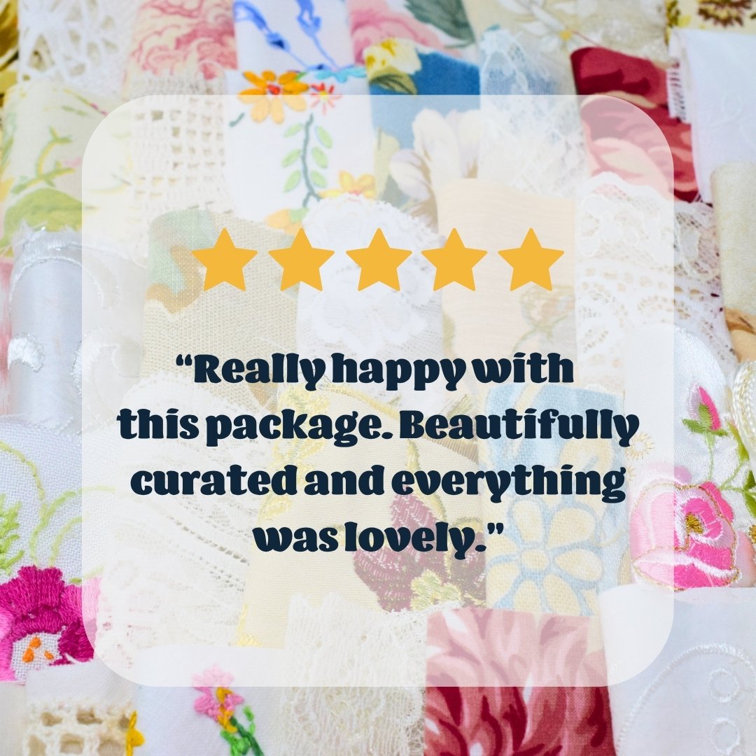 Vintage lace and crochet mingled with 1980s chintz, pretty furnishing fabrics and embroidered table linens, all washed and pre-cut ready to be stitched. Especially chosen for their timeless and nostalgic appeal, our vintage linen scraps come in a variety of different fibres, patterns and textures - the dream combination for slow stitching, fabric collage and appliqué work.